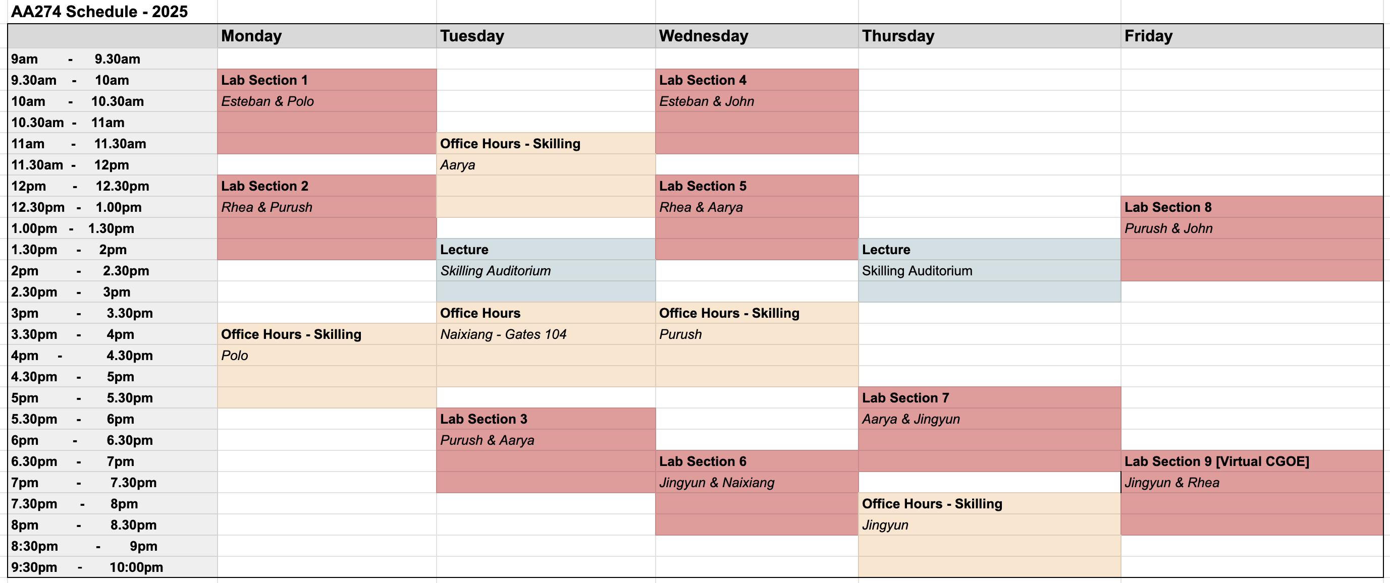 Students are expected to attend one 2-hour section each week. Details about lab signups will be posted Week 2.